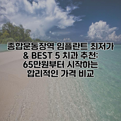✅ 종합운동장역 주변 5곳의 임플란트 가격과 후기를 비교분석하고, 최저가 65만원부터 시작하는 합리적인 이벤트 정보도 확인하세요! 어금니 임플란트의 모든 것을 한번에!